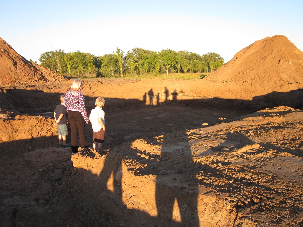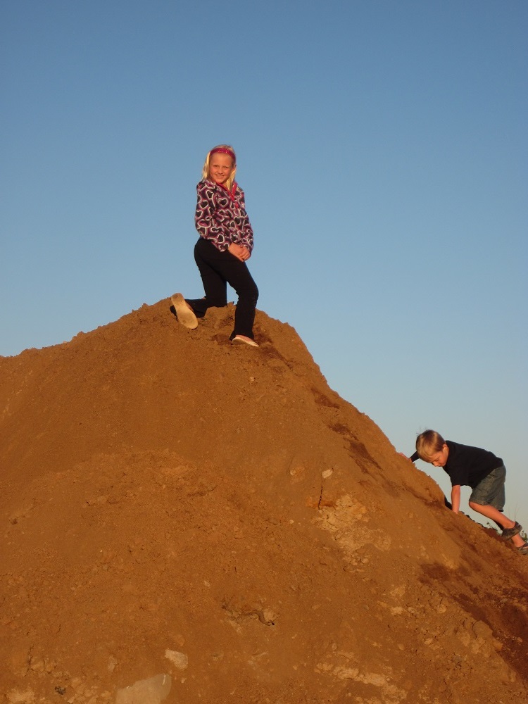 the kids are amazed at the dirt piles & the hole that Dave with Diggers inc created for them to play in.