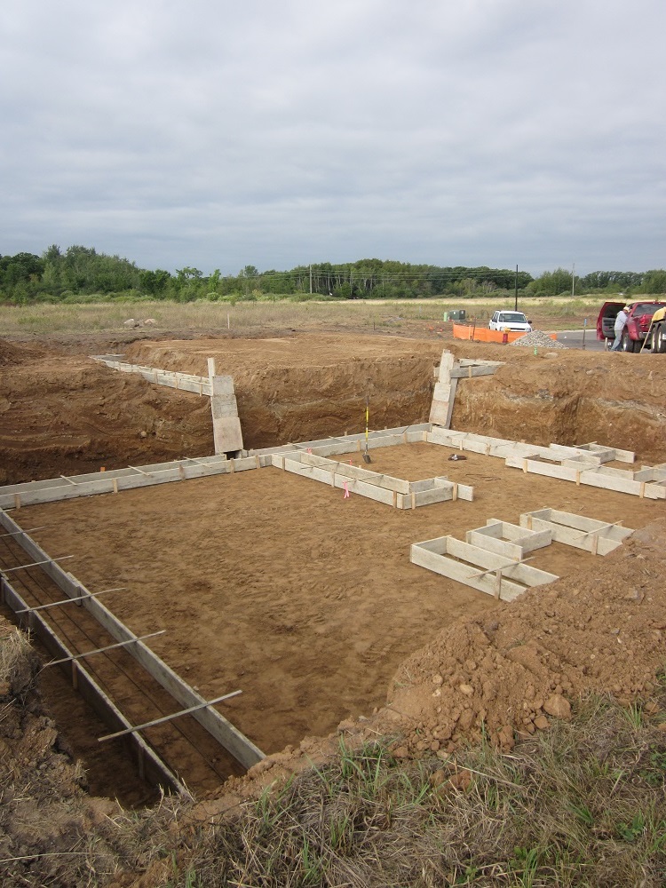 setting the forms for the footing. Guys from Stockinger Masonry setting the forms.