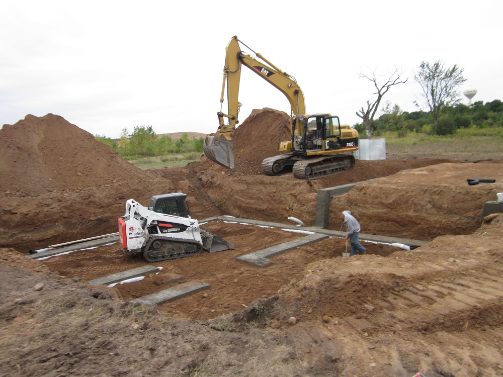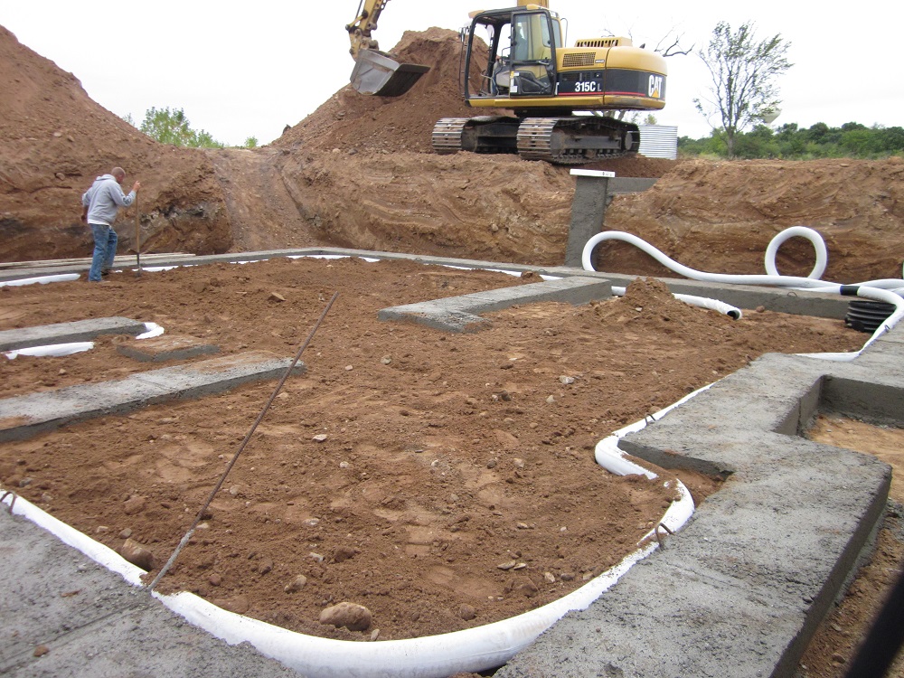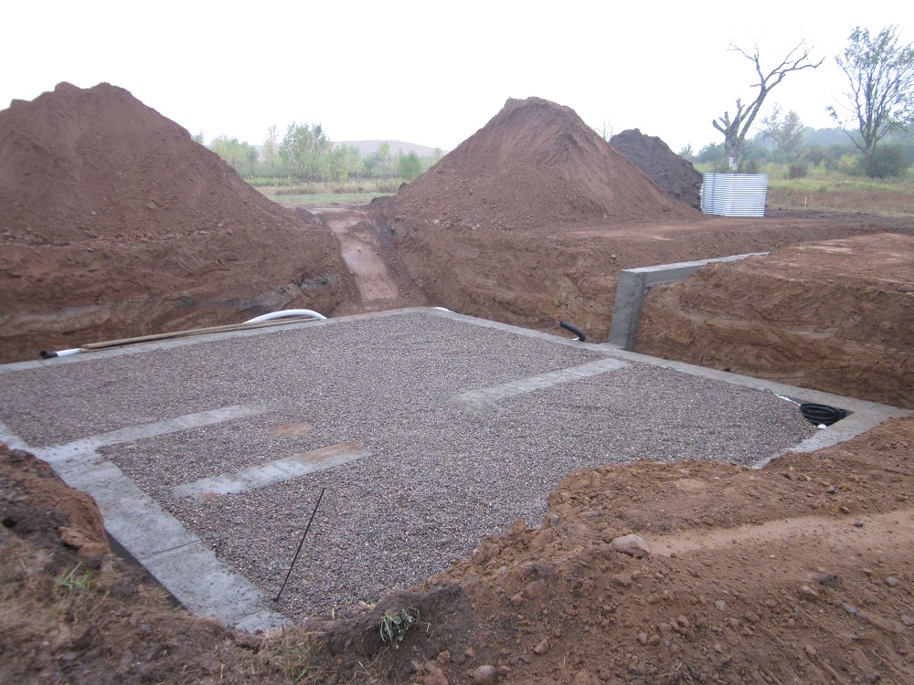 Dave got the radon rock in, now ready for Stockinger Masonry to start laying conc block foundation.