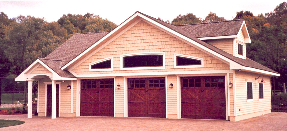 As you approach you'll realize that this is no ordinary garage. Once through the door you'll find lockers for your coat and shoes. There is an abundance of cabinetry and an indoor basketball court, which is accented by timber trusses.